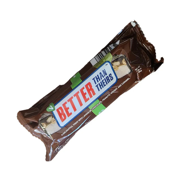 Break Free specializes in premium, consciously crafted veganized versions of your favourite childhood candy bars. Better Than Theirs features layers of chocolate, nougat, peanuts and caramel.