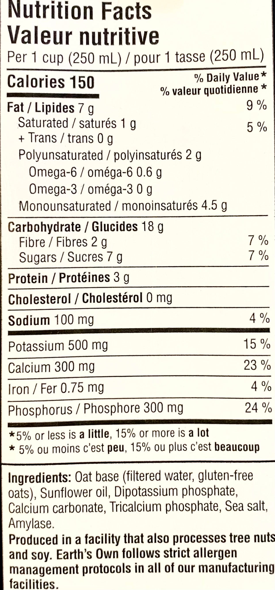 Ingredients: Oat Base (Filtered Water, Gluten-Free Oats), Sunflower Oil, Dipotassium Phoshphate, Calcium Carbonate, Tricalcium Phosphate, Sea Salt, Amylase.